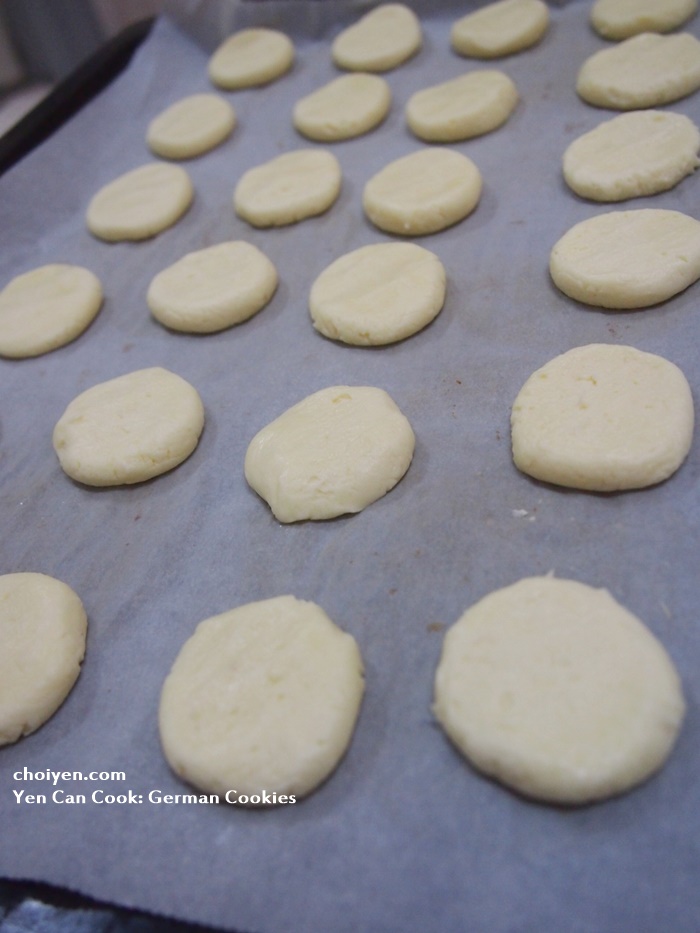I do that to my cookies too….pressing them down with a floured fork directly from the small dough balls formed (this way, you can actually skip step 4). Your cookie disc looks almost like a macaroon. Why are they called German cookies?