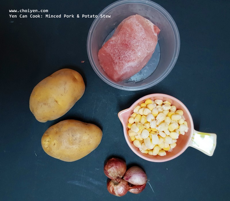 Step 5: Add in the potato slices and corn, as well as oyster sauce, sugar and water. Stir to coat all the ingredients. Cover with lid and simmer, stirring occasionally, for 10-15 minutes (depending on the size of potato or carrot if you add any). Add a bit of hot water if the sauce runs dry before the potato and carrot turn tender.