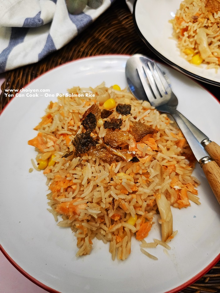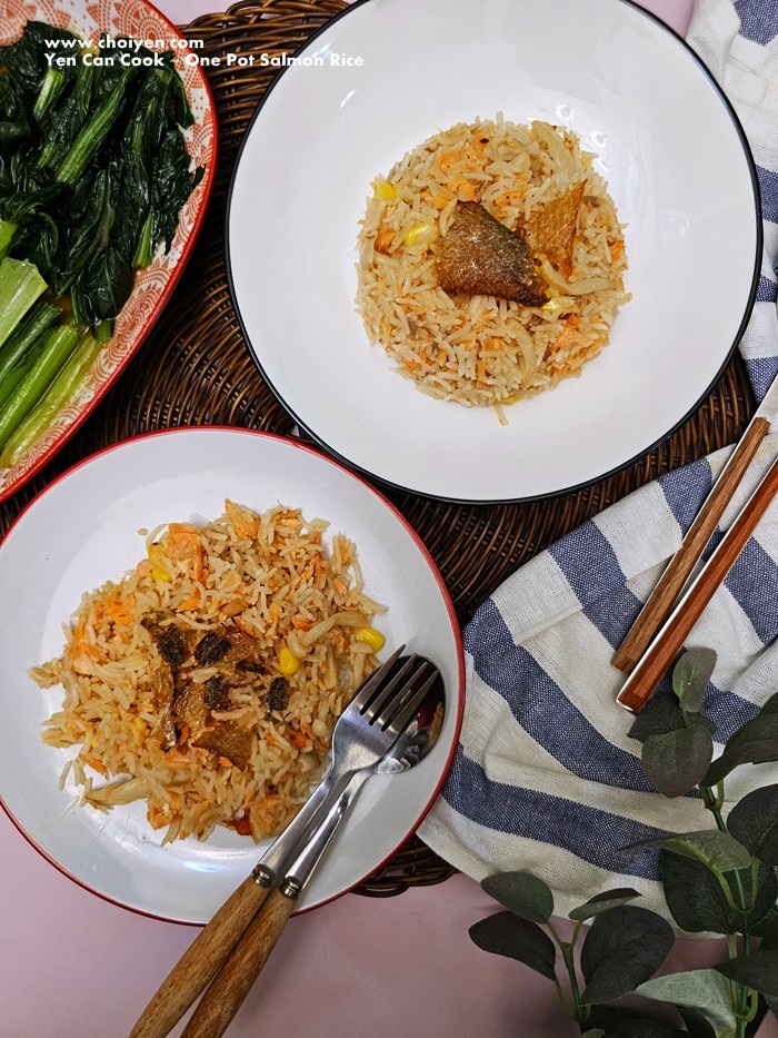 I’m a fan too of one pot meals like this and resort to them frequently. I also thought your one pot salmon rice looked a lot like nasi biryani…hehehe. P/S: I’m assuming you transferred the cooked ingredients into rice that’s already cooked? That’s what I see from your photo but you mentioned in Step 5 “cook rice as usual” which confused me if the rice was already cooked or not (unless you meant “heat rice as usual”). The next time I get a piece of salmon, I would try this. ^_~