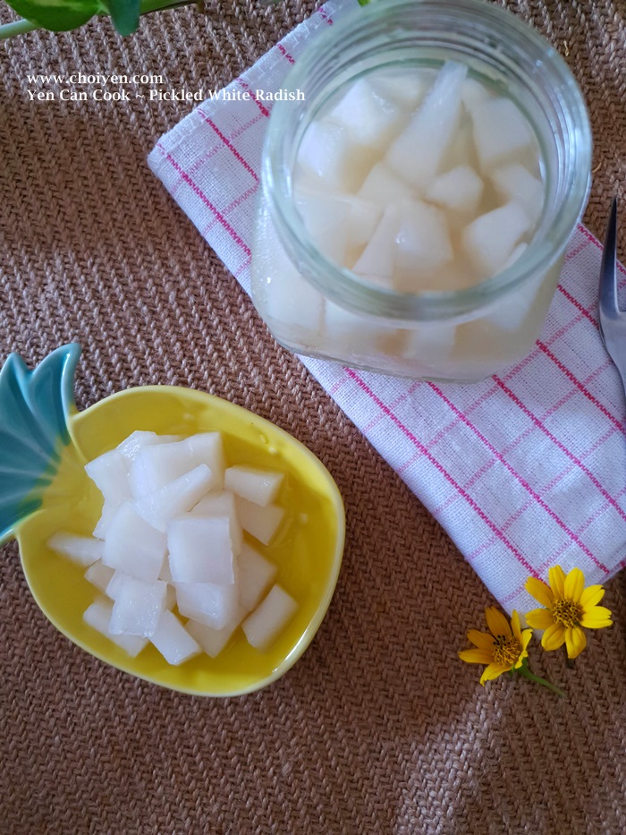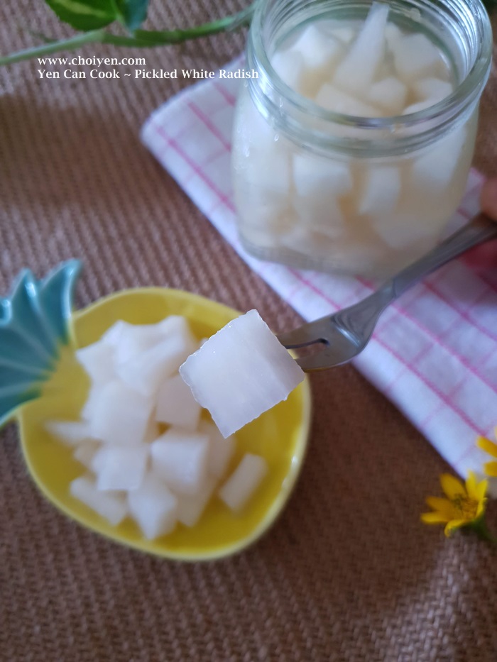 Oh yes, I love these pickled white radish when eating Korean fried chicken. It helps to douse the fire in my mouth for the spicy chicken.