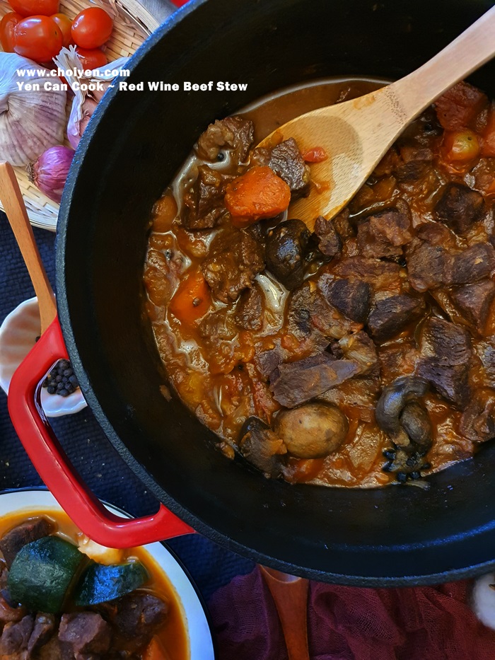 This dish has been in my to-cook list for some time and I just didn’t have the urge to cook it until I saw my blogger friend KY shared his beautifully executed beef stew in his IG story. That prompted me to get all the ingredients needed and finally cooked this on last Sunday.