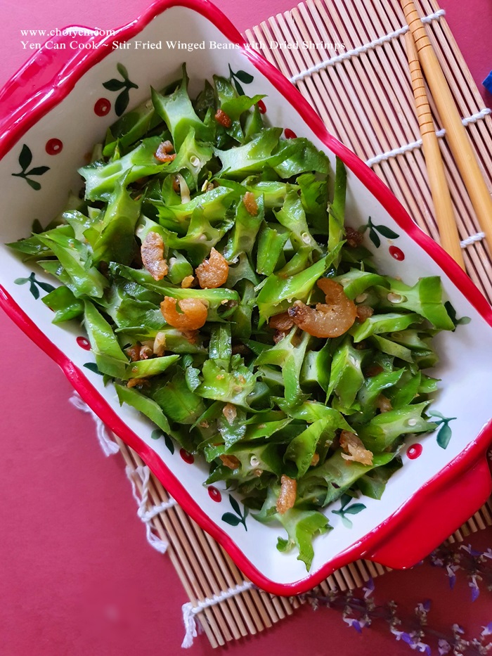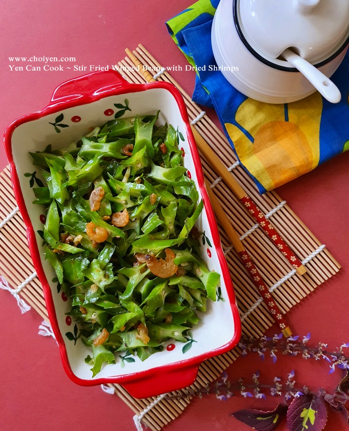 Yen Can Cook ~ Stir Fried Winged Beans with Dried Shrimps