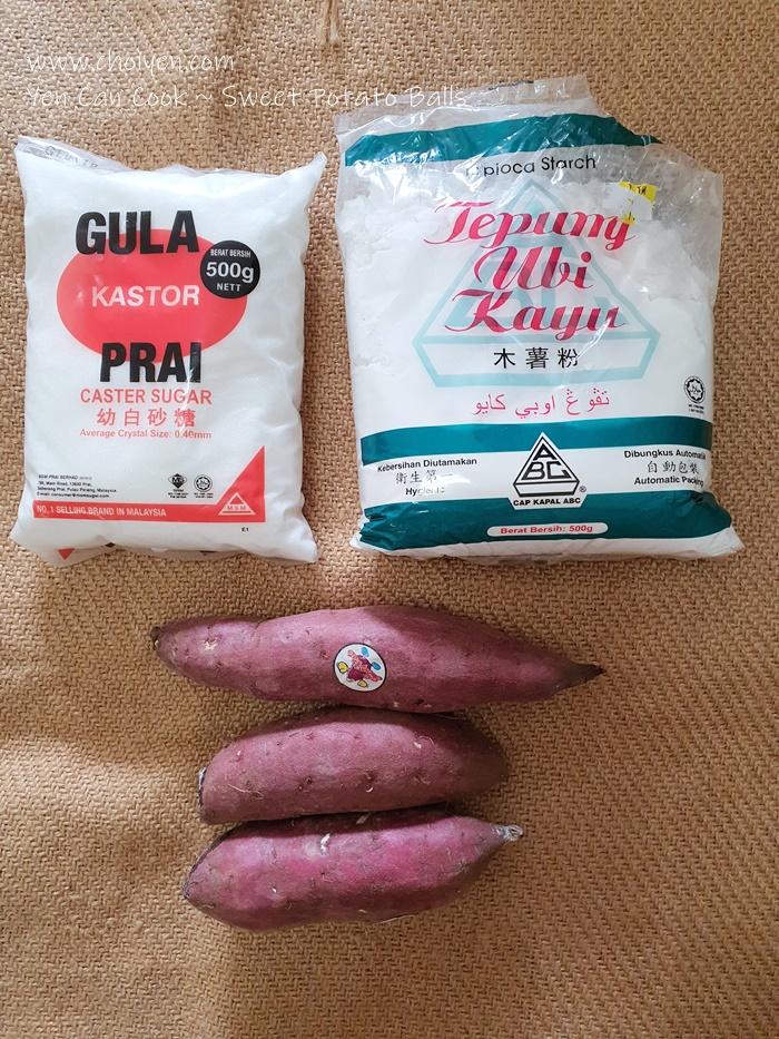 I have a craving list during the MCO period (or the recent CMCO), which obviously consists of the food that I have been craving but not really available or conveniently to get (due to the distance). Cakes (constantly craving for this >_<“), Keropok Lekor, Malay/Nyonya kuih, icy dessert (such as ABC) and Tau Foo Fah, are some of the food my list 😛 As you can see, most of the food are street food and those food are quite hard to recreate at home (at least for me & my cooking skill). But there’s a food that I think I can make it at home, sweet potato balls.