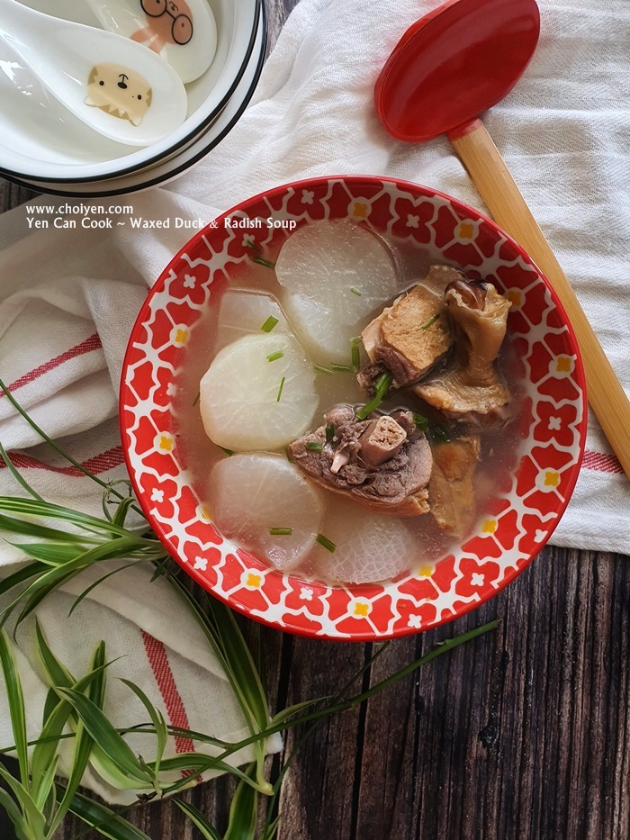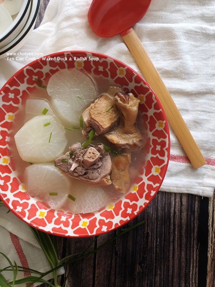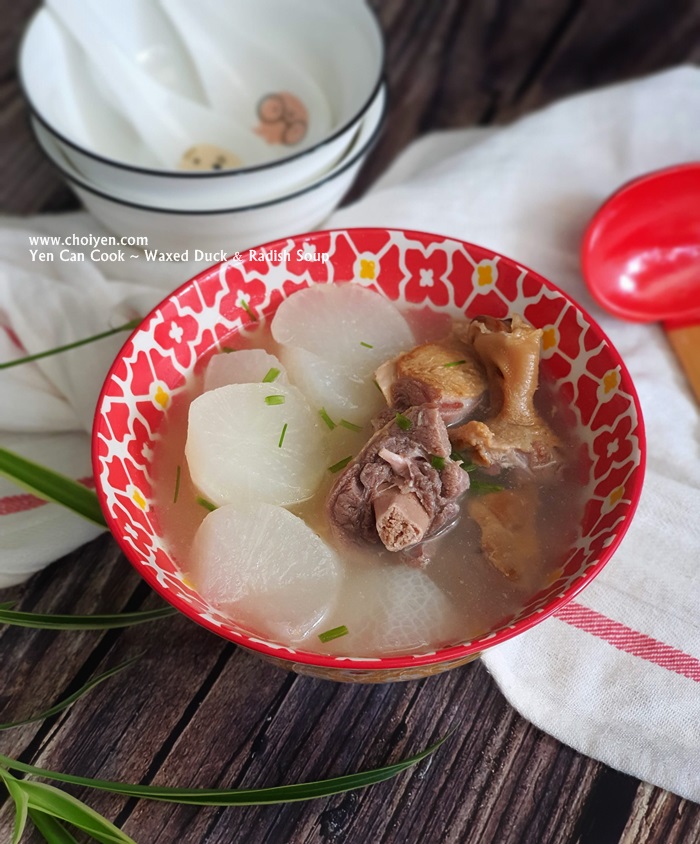 Although this is a quick soup dish which can be ready in 30 minutes but doesn’t compromise on flavour. The broth was richly infused with the unique flavor and aroma of the waxed duck leg chunks and the boiled to tender soft radish also equally tantalizing. Bookmark this recipe and try it out on next Chinese New Year! (^^)v