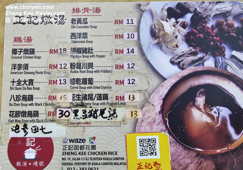 The menu is simple and straightforward. Beside the chicken rice (roasted and poached), Zheng Kee also offers roasted pork (Siew Yoke), BBQ pork (Char Siew), blanched vegetables, spicy and sour mustard green (Chai Boey), as well as their another signature food – double boiled soups.